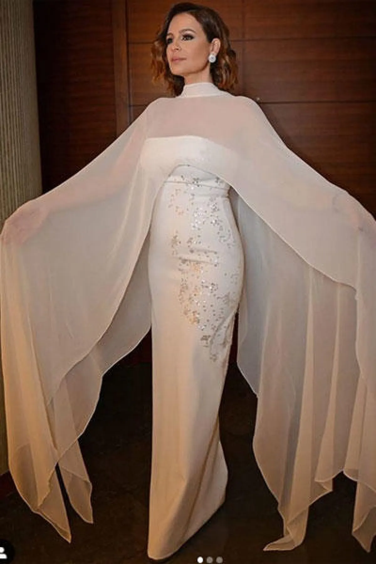 يبدو أن اللون الأبيض من ألوان الفساتين المفضلة للنجمة كارول سماحة، حيث تعتمده في كثير من المناسبات.