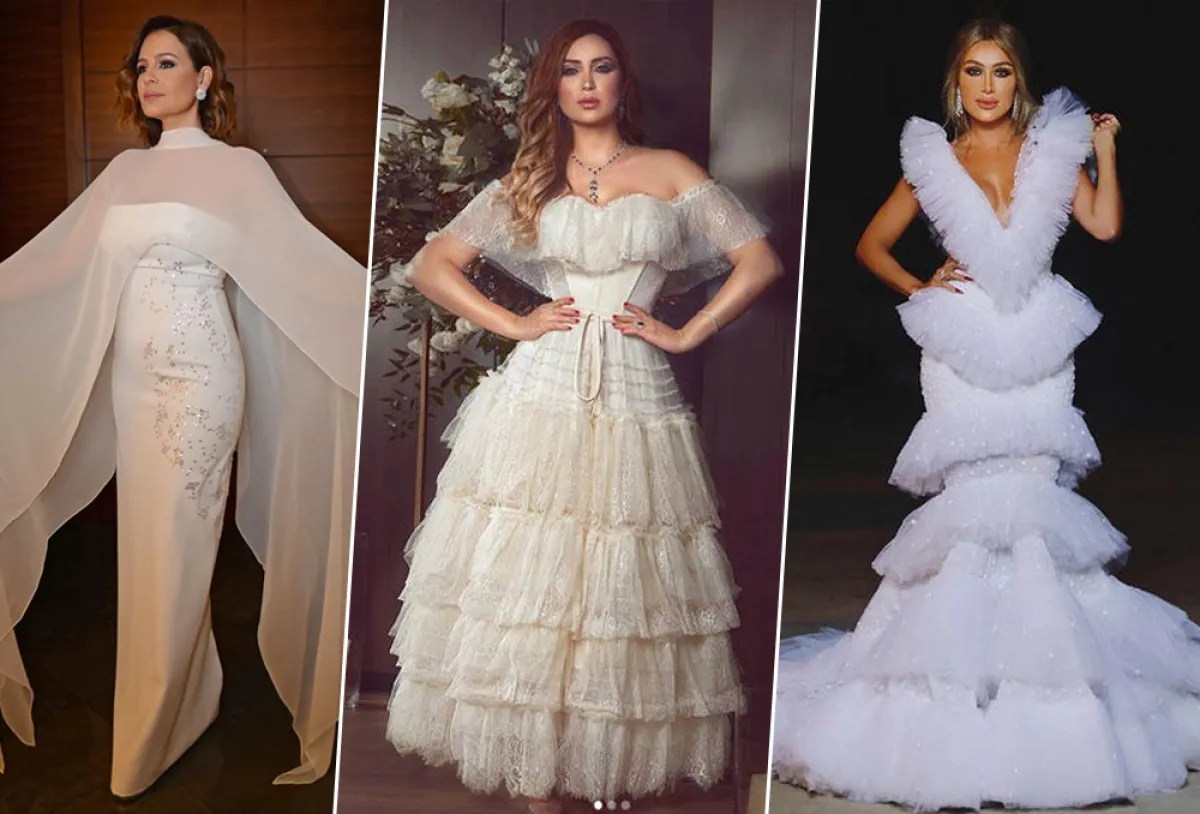 حيث ظهرت مجموعة من النجمات بفساتين تحاكي أثواب الأعراس بتصاميم تجمع بين الأنوثة والعصرية.
