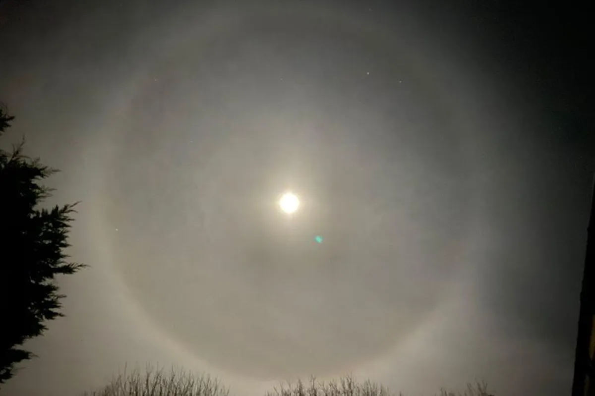 حالف الحظ بعض الناس الذين شاهدوا هالة تتكون حول القمر، عندما نظروا إلى السماء في ليلة العاشر من ديسمبر (كانون الأول) يوم الأربعاء. وبحسب موقع «ميرور» كان من المحظوظين الذين شاهدوا هالة القمر «ماثيو كوتر» البالغ من العمر 35 عاماً من وارويكشاير، الذي التقط صورة مذهلة للظاهرة النادرة على حلبة سباق وارويك في الساعة 20:05 بتوقيت جرينتش الليلة الماضية.