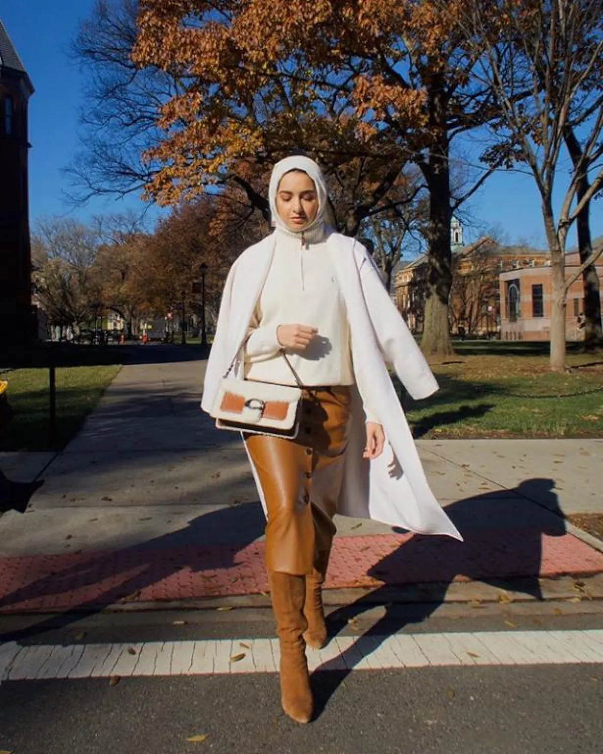 برزت موضة بوت الساق الابيض منذ العام الماضي بين النجمات، ويمكن للمحجبات تنسيقه مع البناطيل الجينز باللون الأزرق أو الأسود، لاطلالة كاجوال، مع البلوزات والقمصان الطويلة.