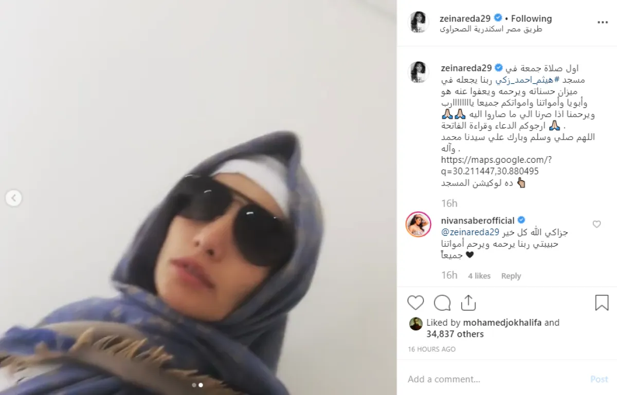 ونشرت الفنانة زينة، عبر حسابها الشخصي بموقع انستقرام، فيديو وصور لها من مسجد النجم الراحل، معلقة عليه قائلة: أول صلاة جمعة في مسجد هيثم أحمد زكي ربنا يجعله في ميزان حسناته ويرحمه ويعفو عنه هو وأبويا وأمواتنا وأمواتكم جميعا يارب ويرحمنا إذا صرنا إلى ما صاروا إليه، أرجوكم الدعاء وقراءة الفاتحة، كما وضعت خريطة خاصة لتيسير وصول جمهورها إلى المسجد.