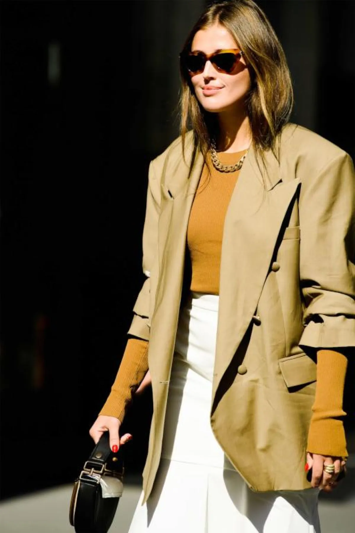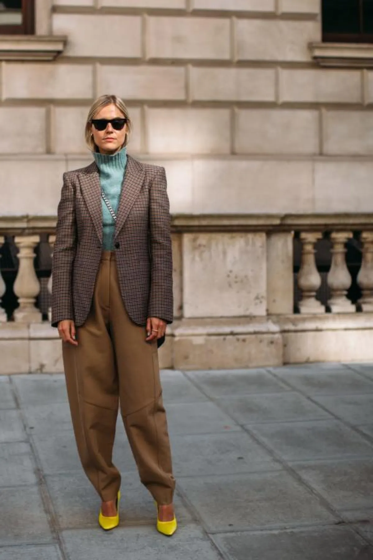 حافظت صيحة البليزر الواسع Oversized blazer على مكانتها ضمن اتجاهات شتاء 2020، اعتمدي معطفًا بطبعة المربعات مع بنطال جينز فاتح اللون، وزيني الخصر بحزام أحمر رفيع لتنفحي هذا اللوك الرجالي بلمسة أنثوية أنيقة.