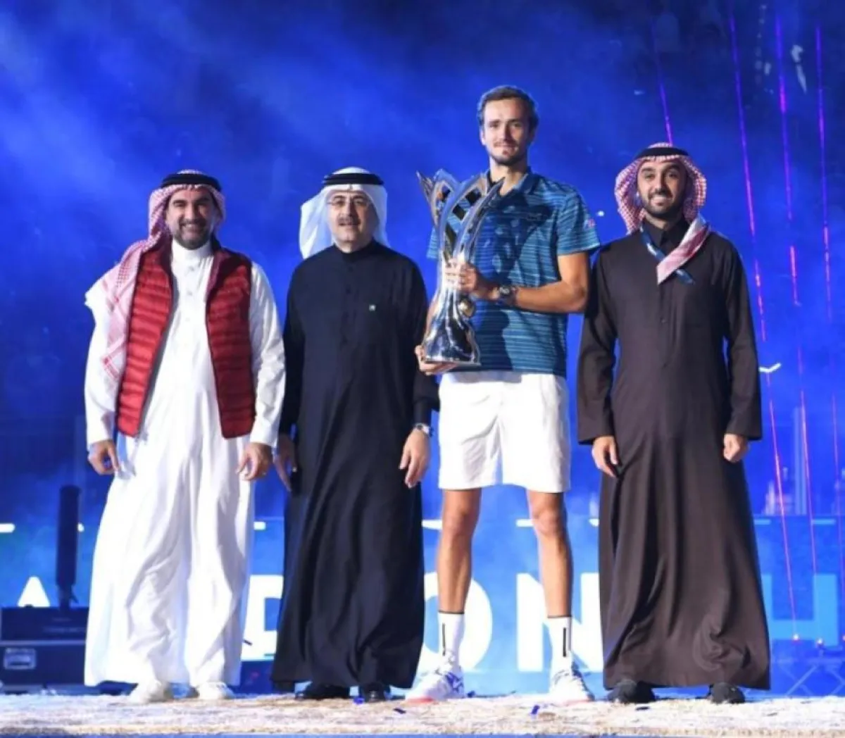 واختتمت البطولة، مساء أمس السبت، وشهدت فوز الروسي ميدفيديف على منافسه الإيطالي فابيو فونيني في المباراة النهائية بمجموعتين مقابل لا شيء، وسط حضور جماهيري غفير، ليصبح بذلك أول لاعب تنس يحقق هذه البطولة التي تقام للمرة الأولى في السعودية.