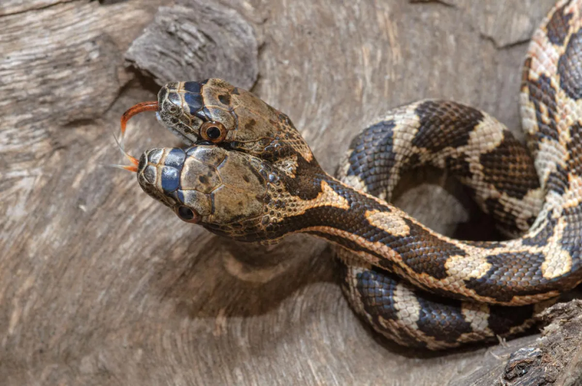 العثور على أفعى نادرة برأسين