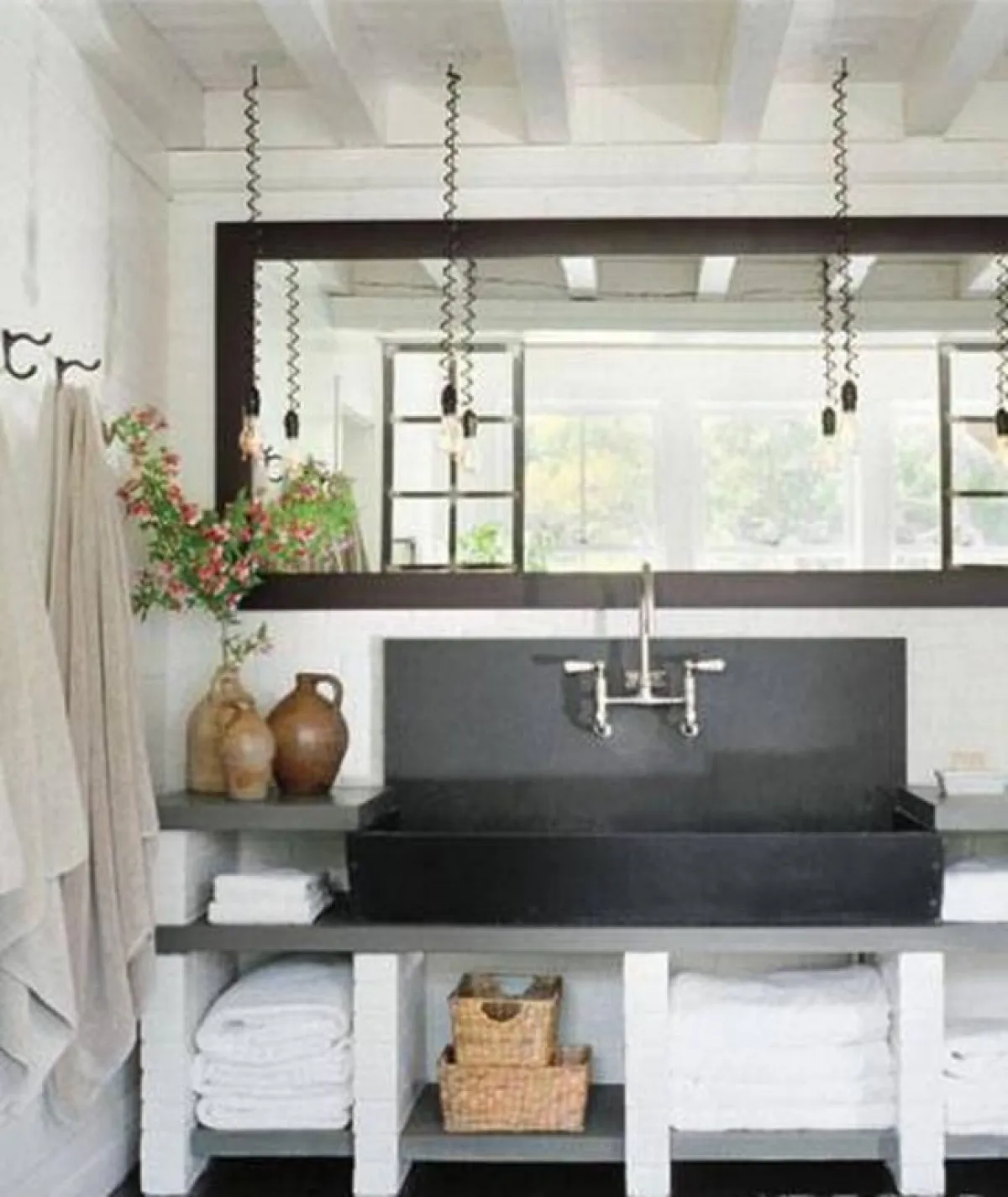 وللرخام مكان في الحمّام الرئيس الفسيح، حيث يستريح حوض استحمام أبيض، تحت النافذة.