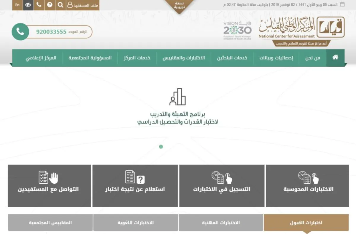 • التسجيل في الاختبارات.