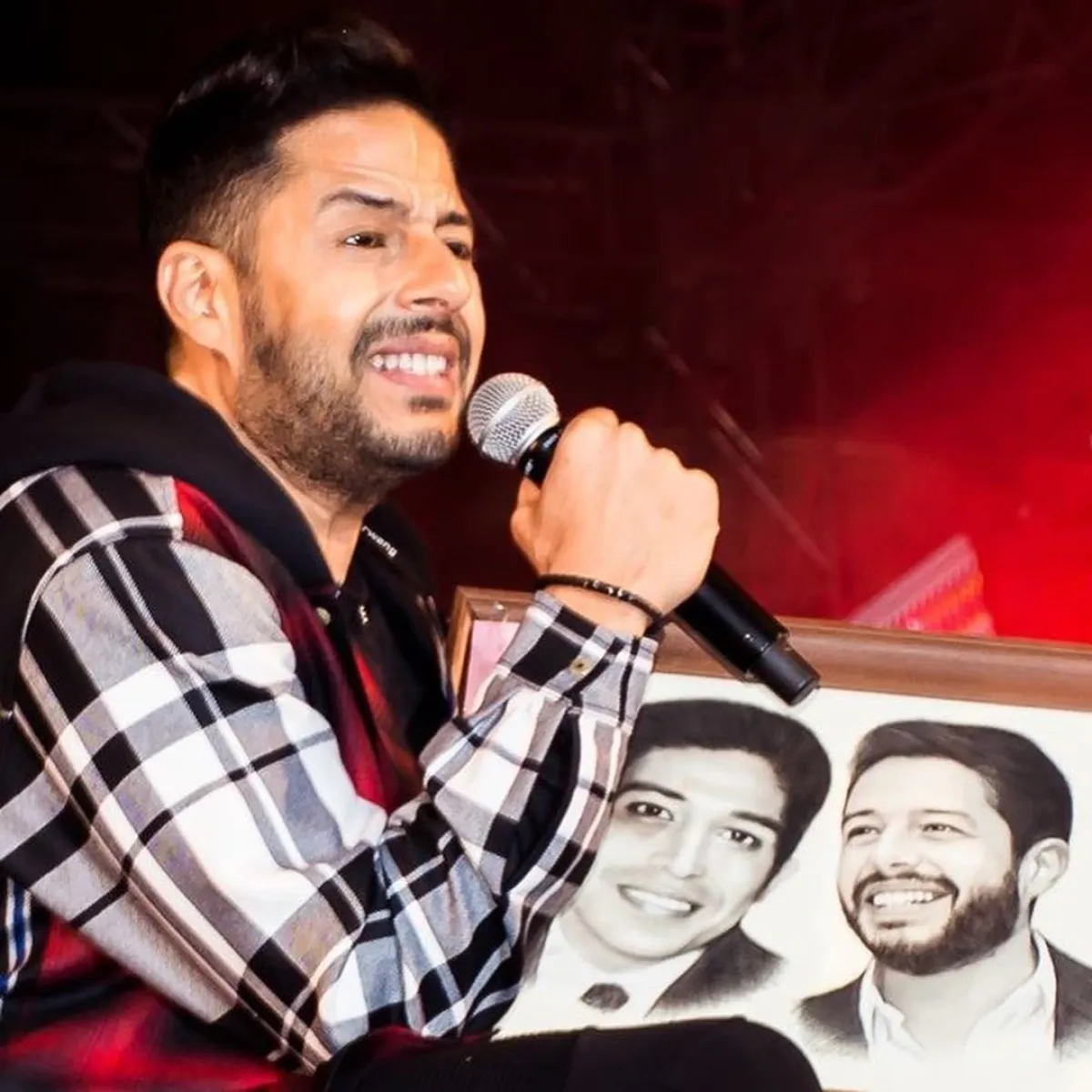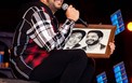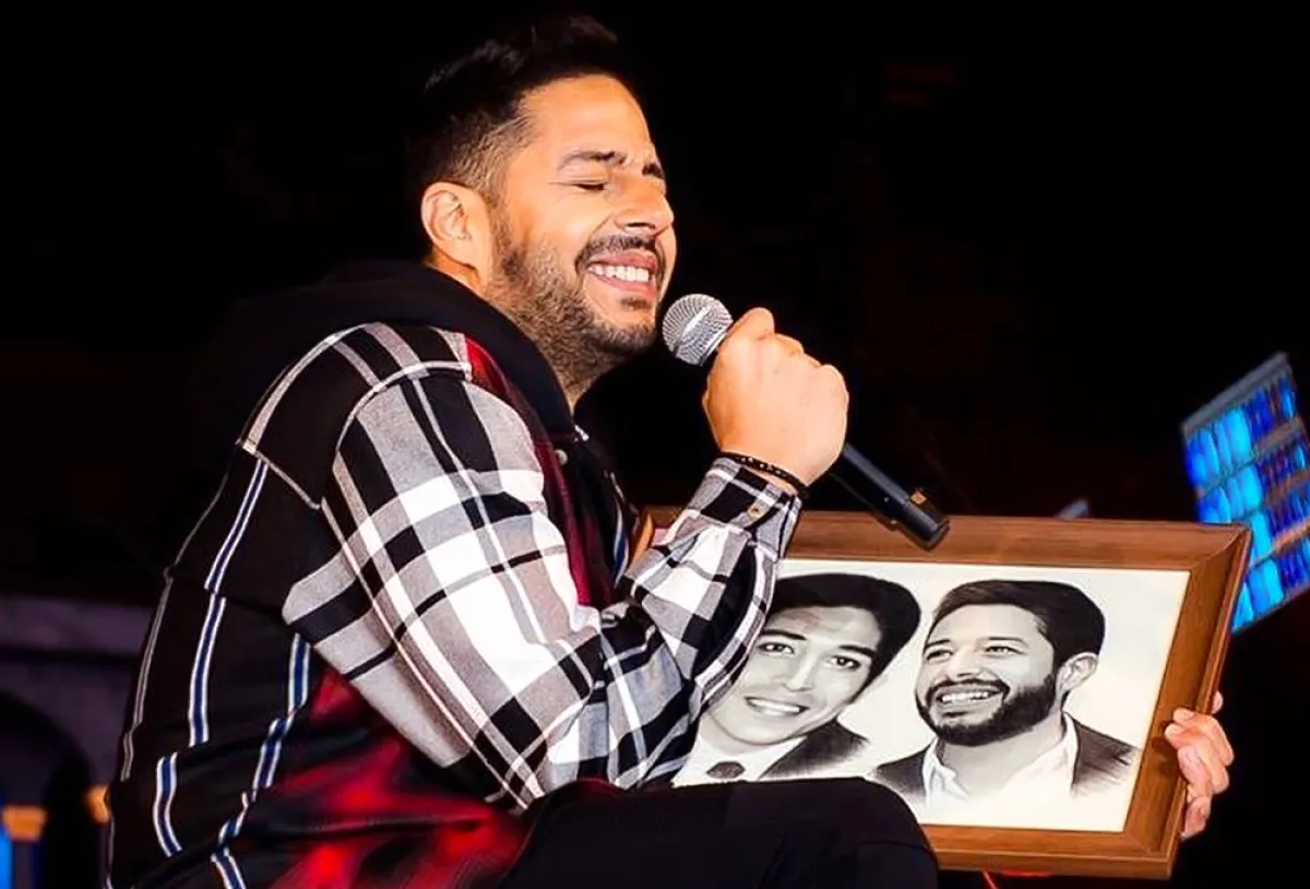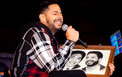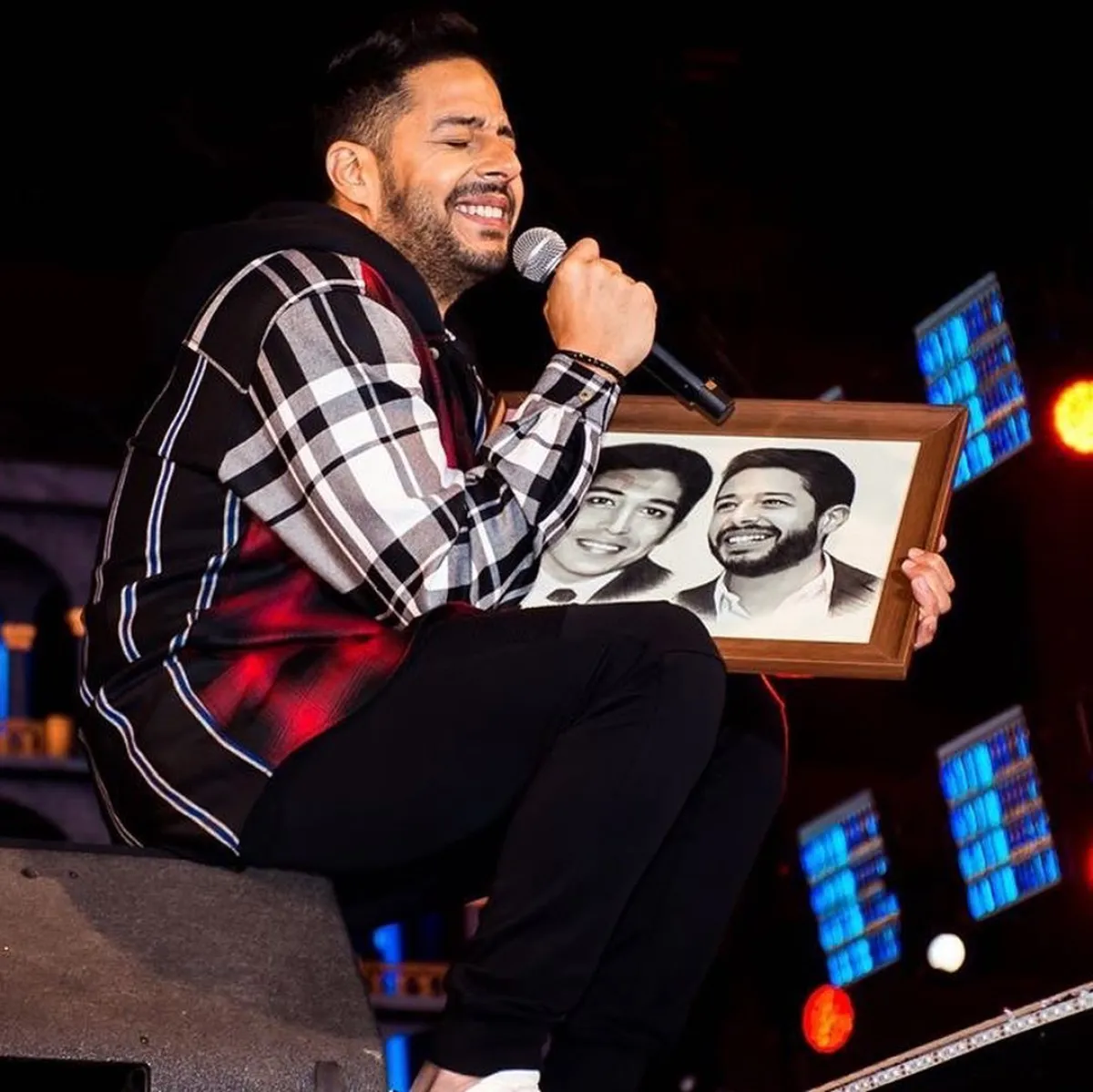 محمد حماقي يحتضن اللوحة التي تجمعه بصورة والده