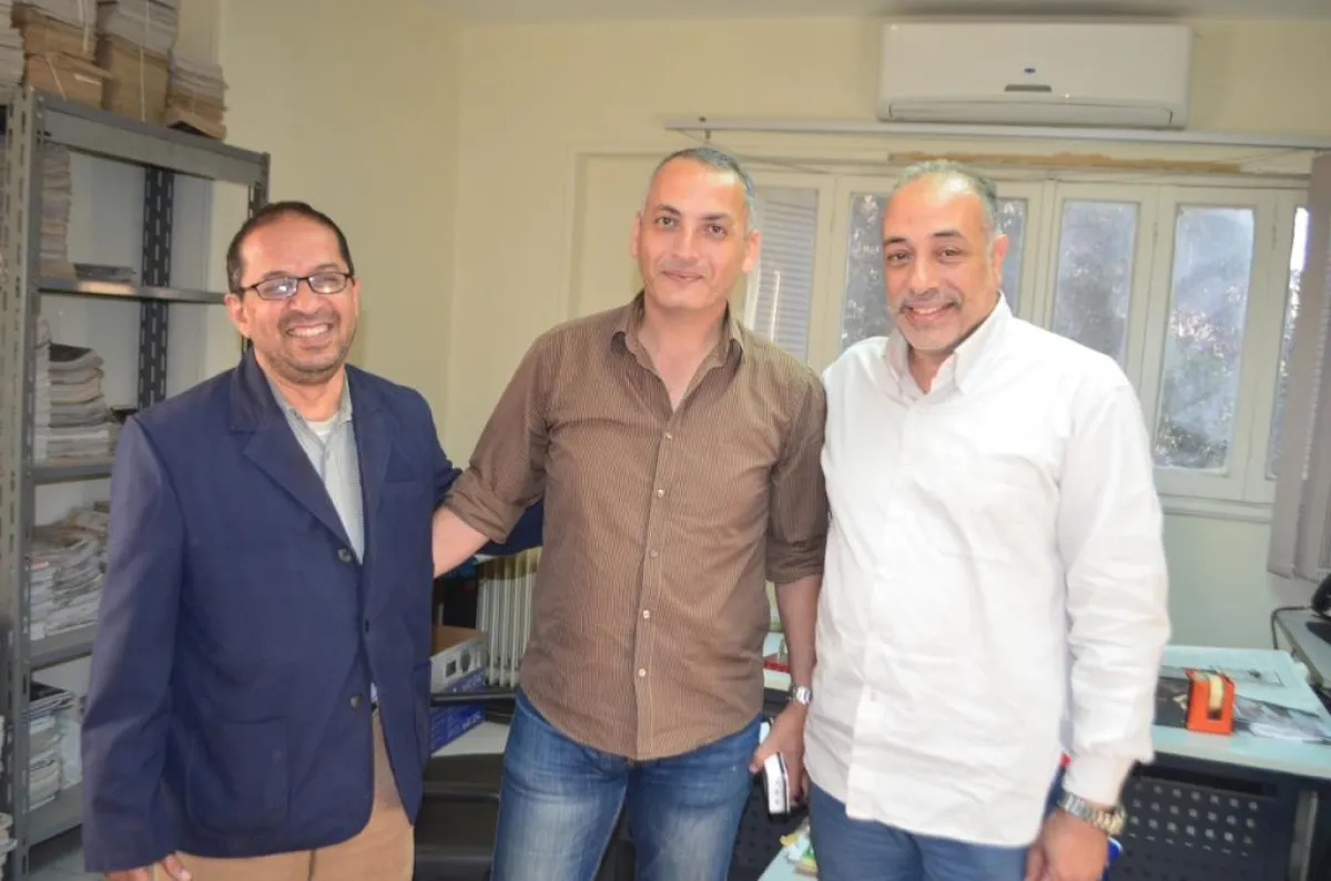 كمال منصور متوسطاً الزميلين مصطفى عبد العال وعلاء شلقامي