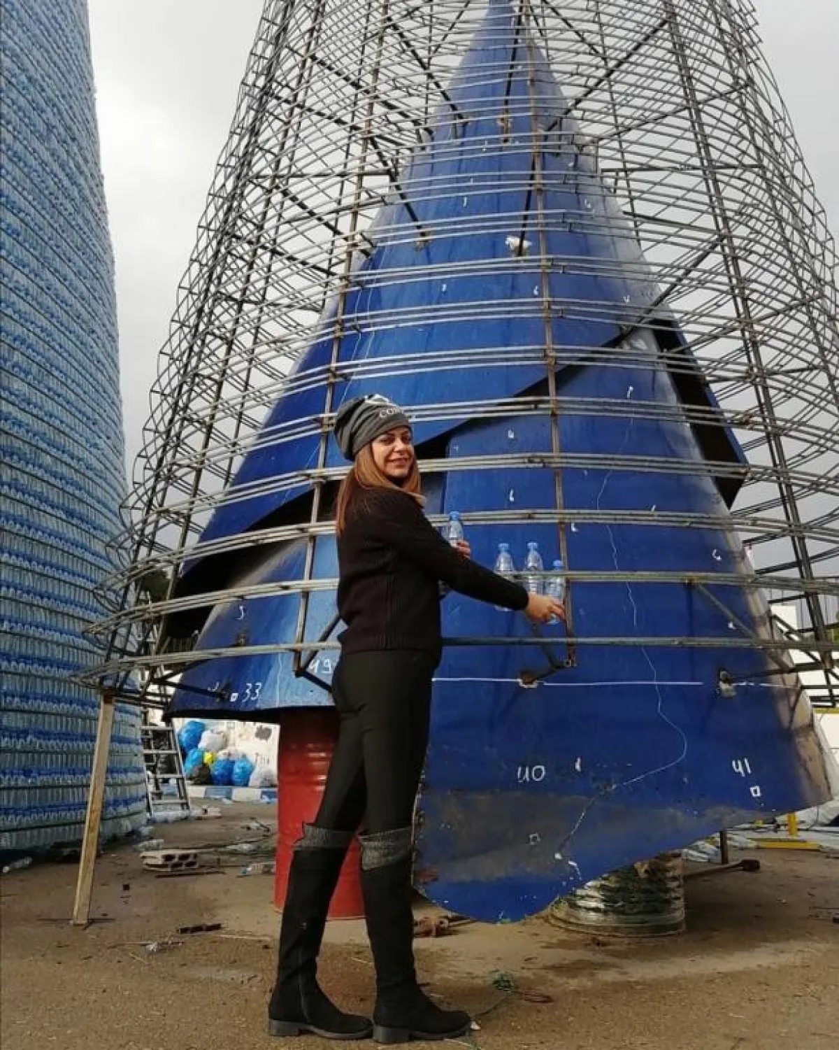 وتضيف: "تضم هذه الشجرة الأكبر في العالم، 6 أجزاء، وأنا فخورة جداً بما أنجزته وطموحي أن أكسر رقمي في العام المقبل، ولا أخفي أمراً إذا قلت بأن هذه العبوات سيتم إعادة تدويرها وبيعها لتأمين كراسٍ للمقعدين وذوي الاحتياجات الخاصة، مع العلم أن هناك حوالي /000. 20 / عبوة لم يتم استخدامها في المشروع".