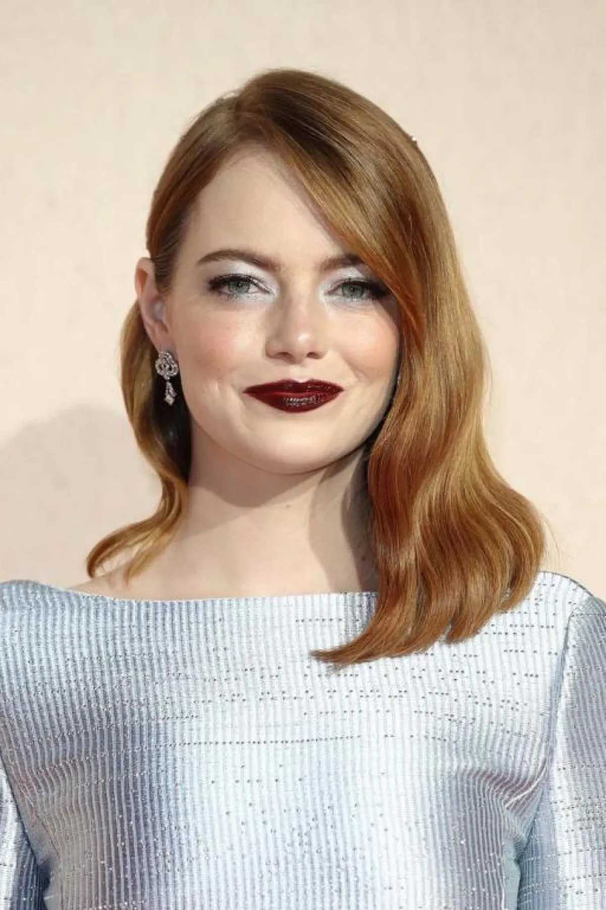 أما إن كنت ترغبين في ترك الشعر منسدلا، فالتفكير بالغرة العريضة التي تخفي الخدود الممتلئة سيكون اختيار مميز، كهذا اللوك من Emma Stone، مناسب كذلك للصبايا اللاتي يبحثن عن الاطلالة المخملية بحفل الزفاف.