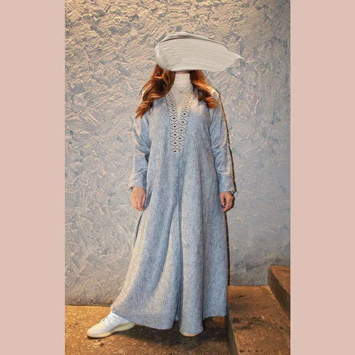 الرمادي الثلجي من الدرجات، التي أحببناها هذا الشتاء كثيرًا، فلم لا تعتمدينه بعبايتكِ المودرن، كهذا التصميم من Nines Abaya موديل واسع، لا يبرز عيوب الجسم يناسب أجسام الصبايا، مع خامة ثقيلة شتوية.